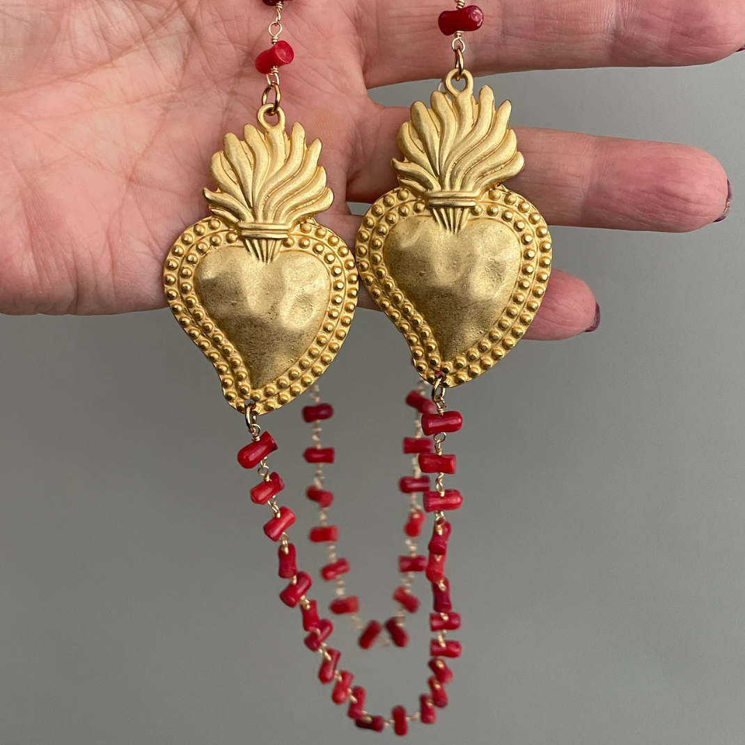 Dos grandes Sagrados Corazones en Zamak interrumpen el diseño, aportando un toque espiritual y sofisticado. Una joya con historia y significado.